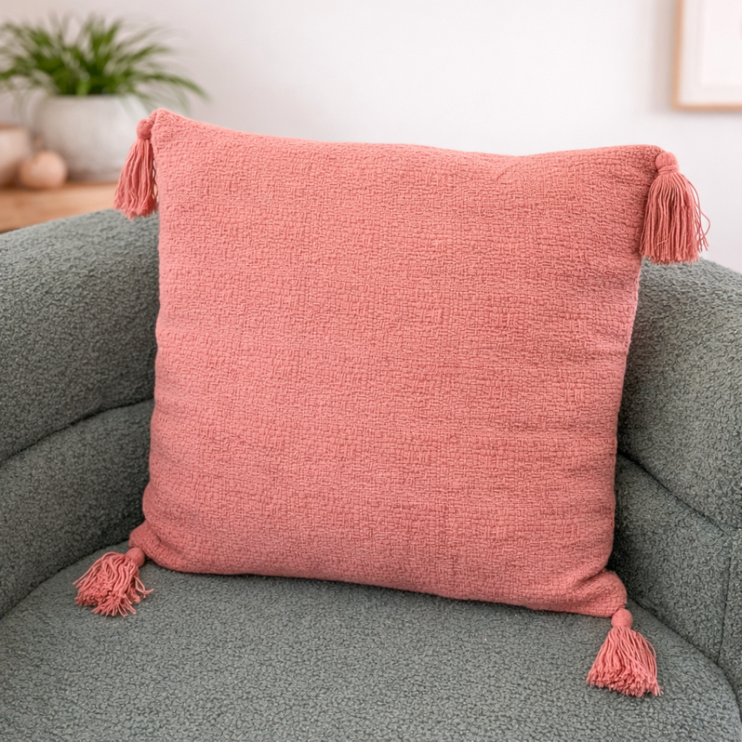 Cojin liso con borlas cuadrado