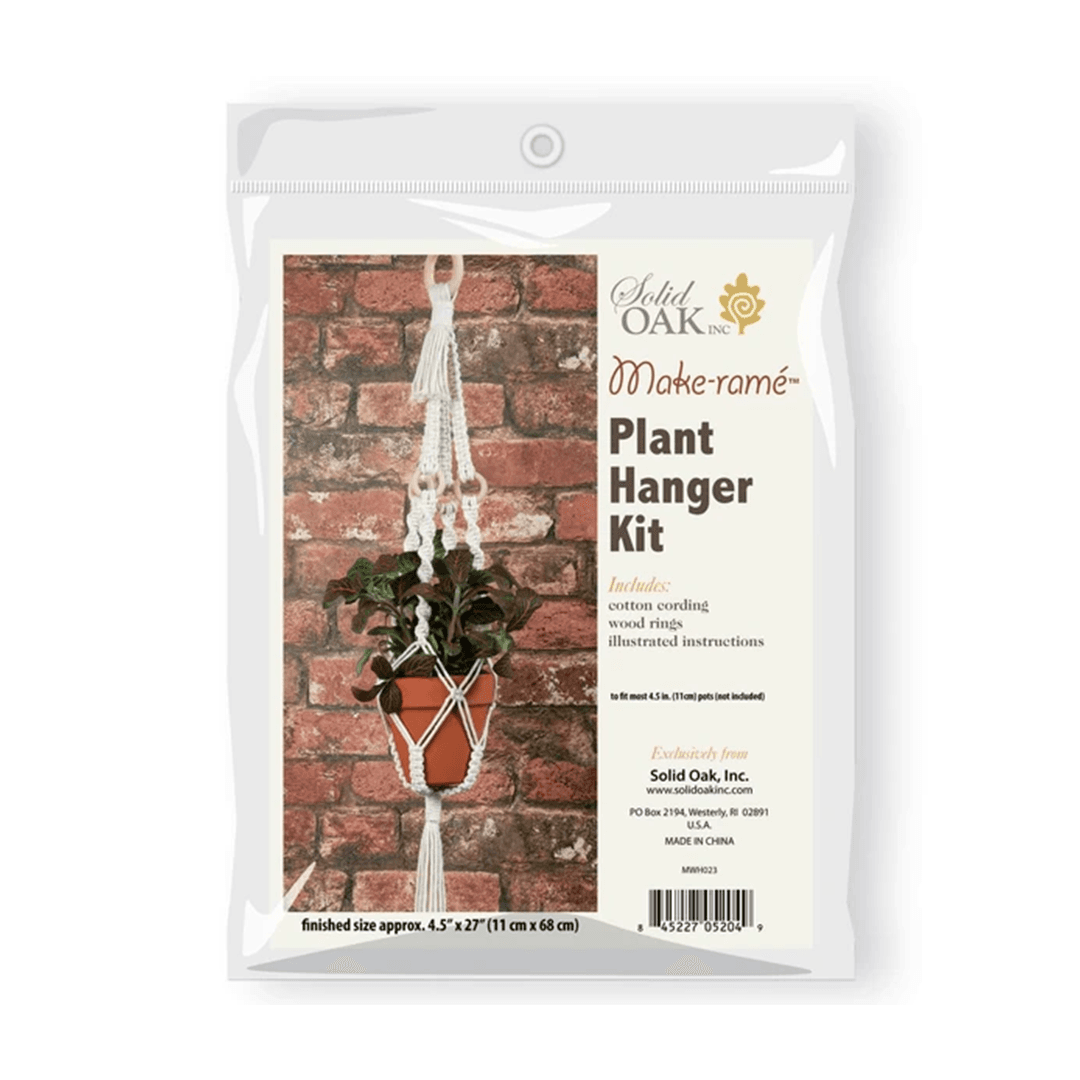 ¡Un kit de macetero colgante fácil de hacer con macramé y un juego de anillos de madera para acentuar el nudo!