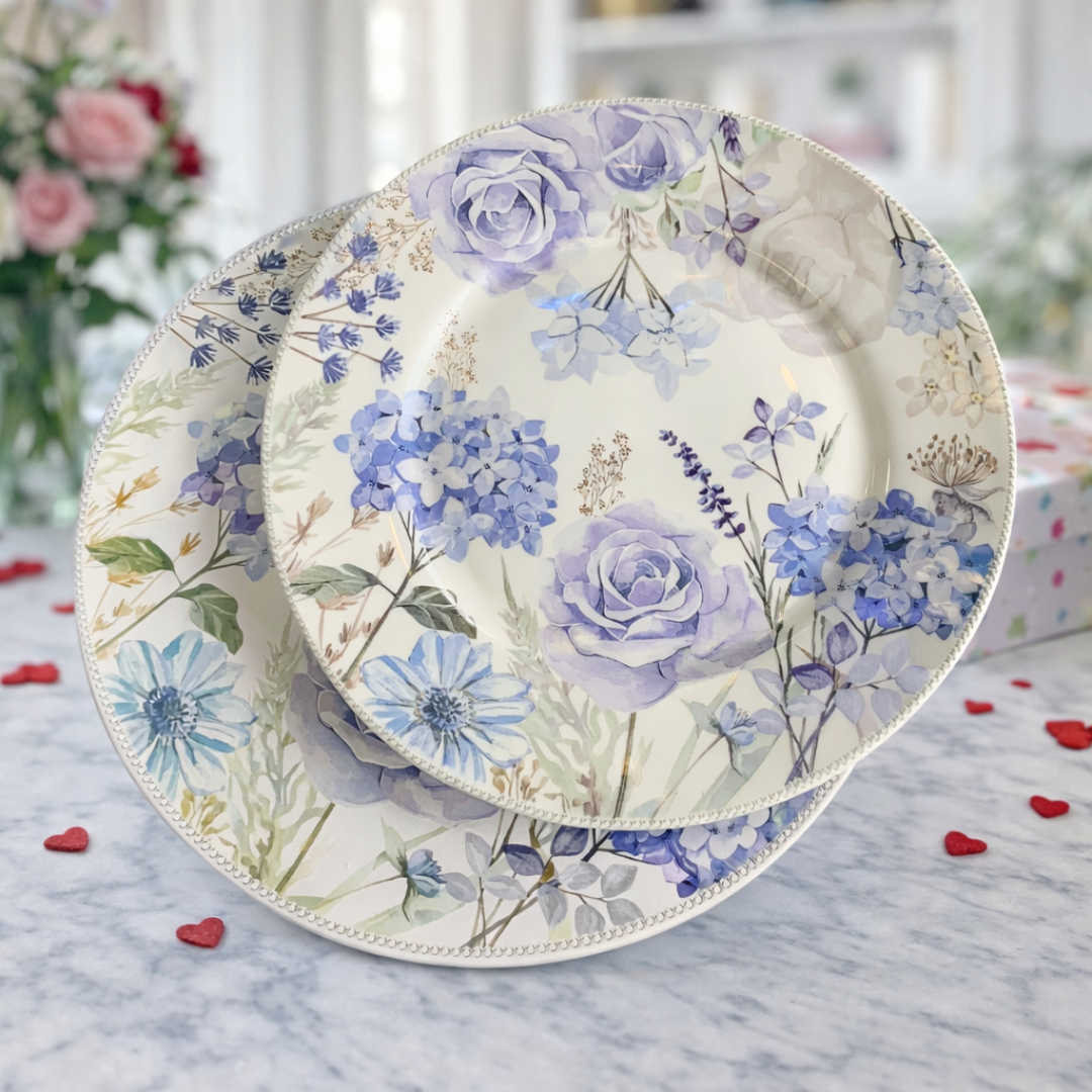 Set de platos flores celestes 2pz